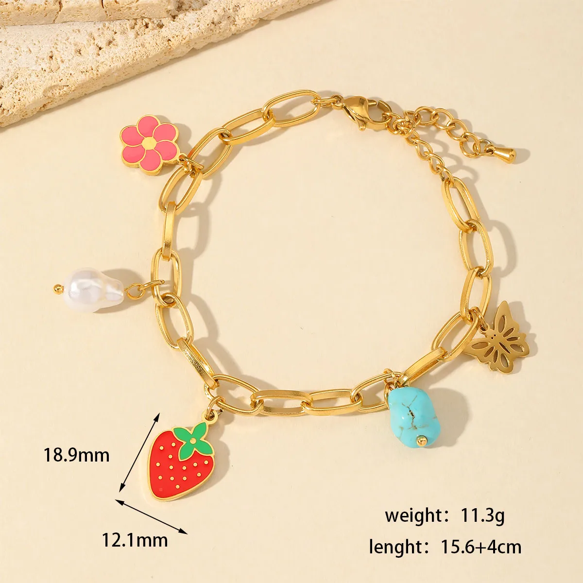 Flower Strawberry charm bracelet